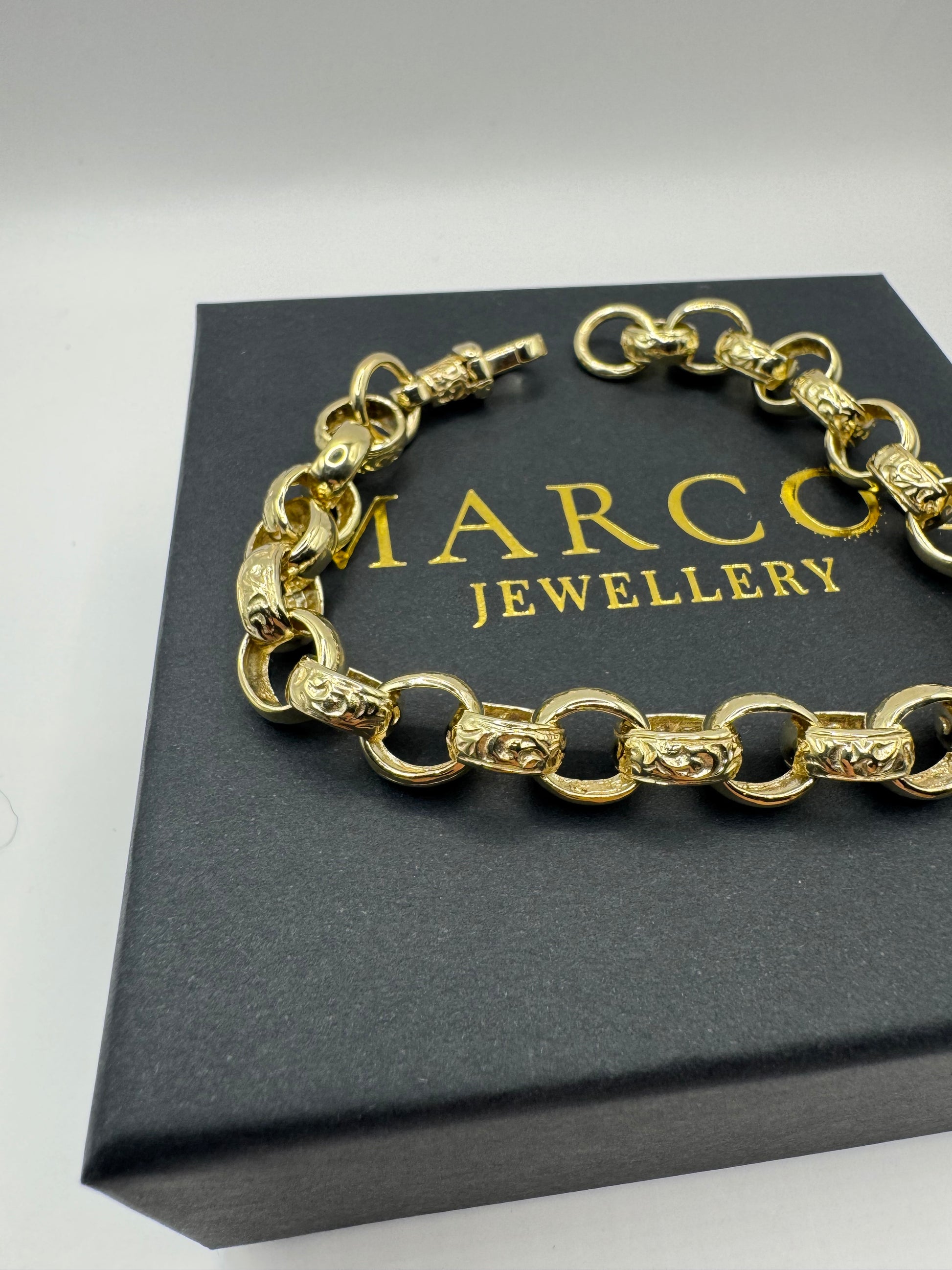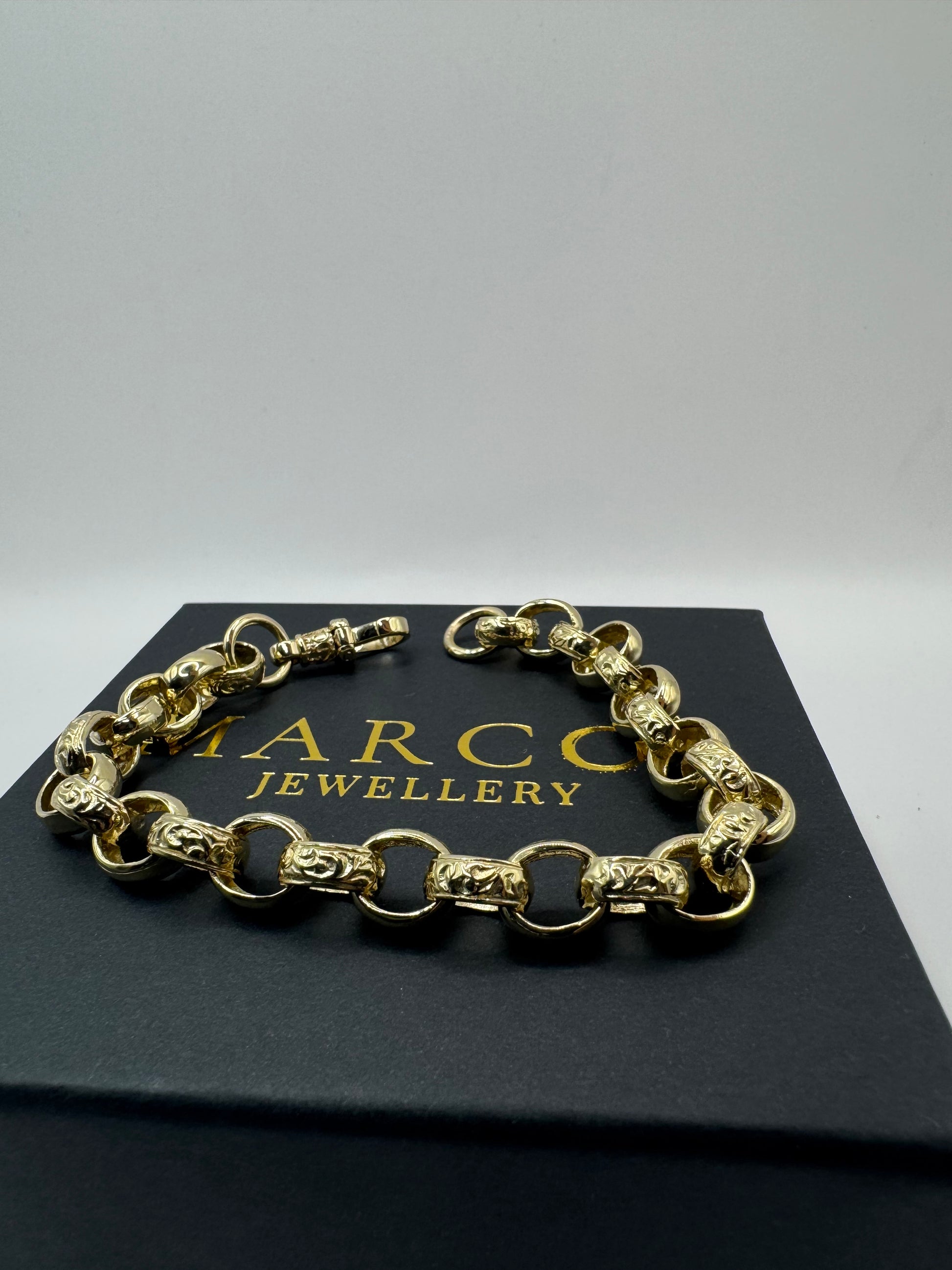 9ct Gold Oval Belcher Bracelet 9.1" 10mm 25g