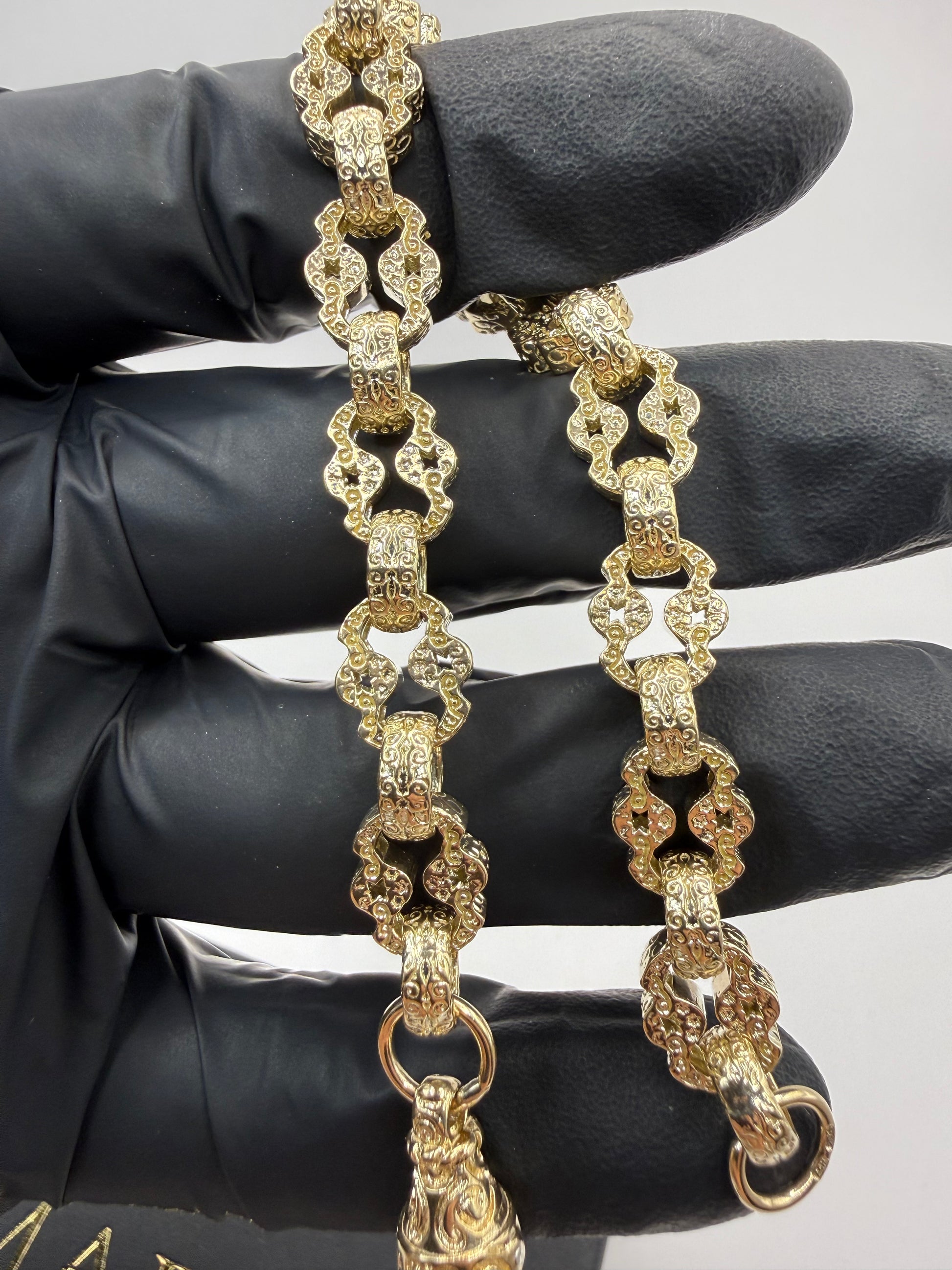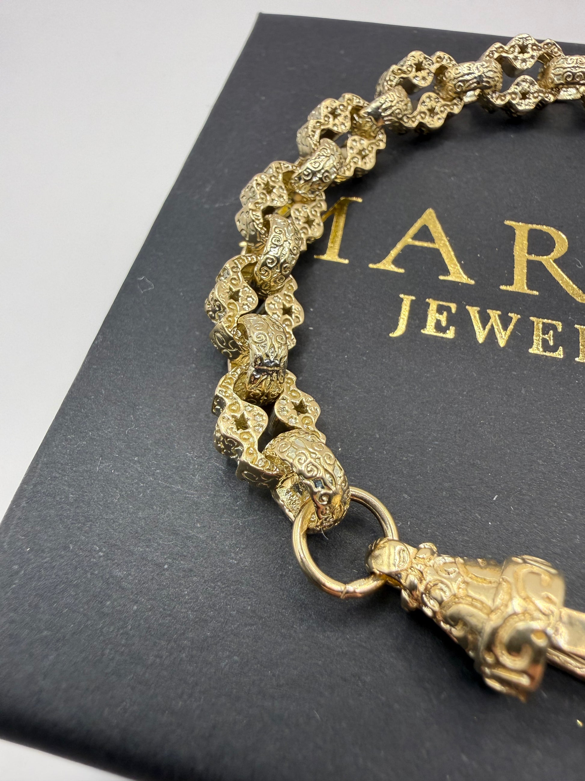 9ct Gold Stars & Belcher Bracelet 8.75" 9mm 26.96g