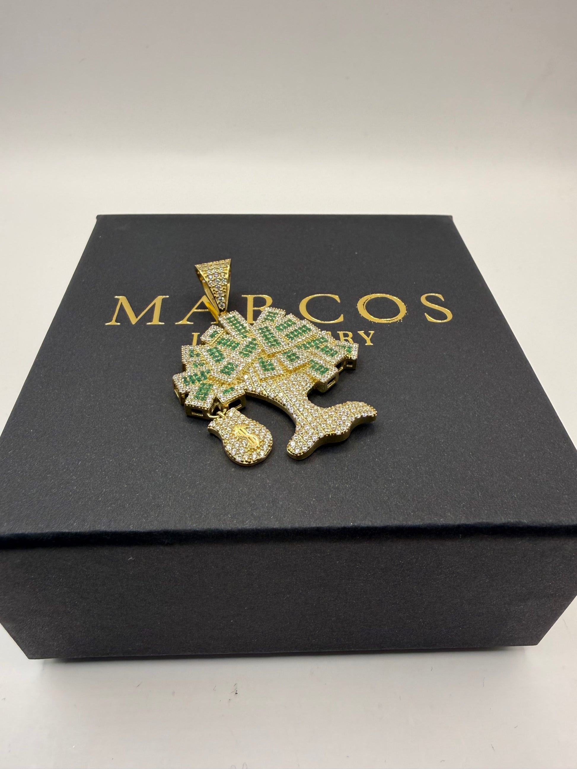 9ct Gold Stone Set Money Tree Pendant 2" 36mm 6mm Bale 9.3g