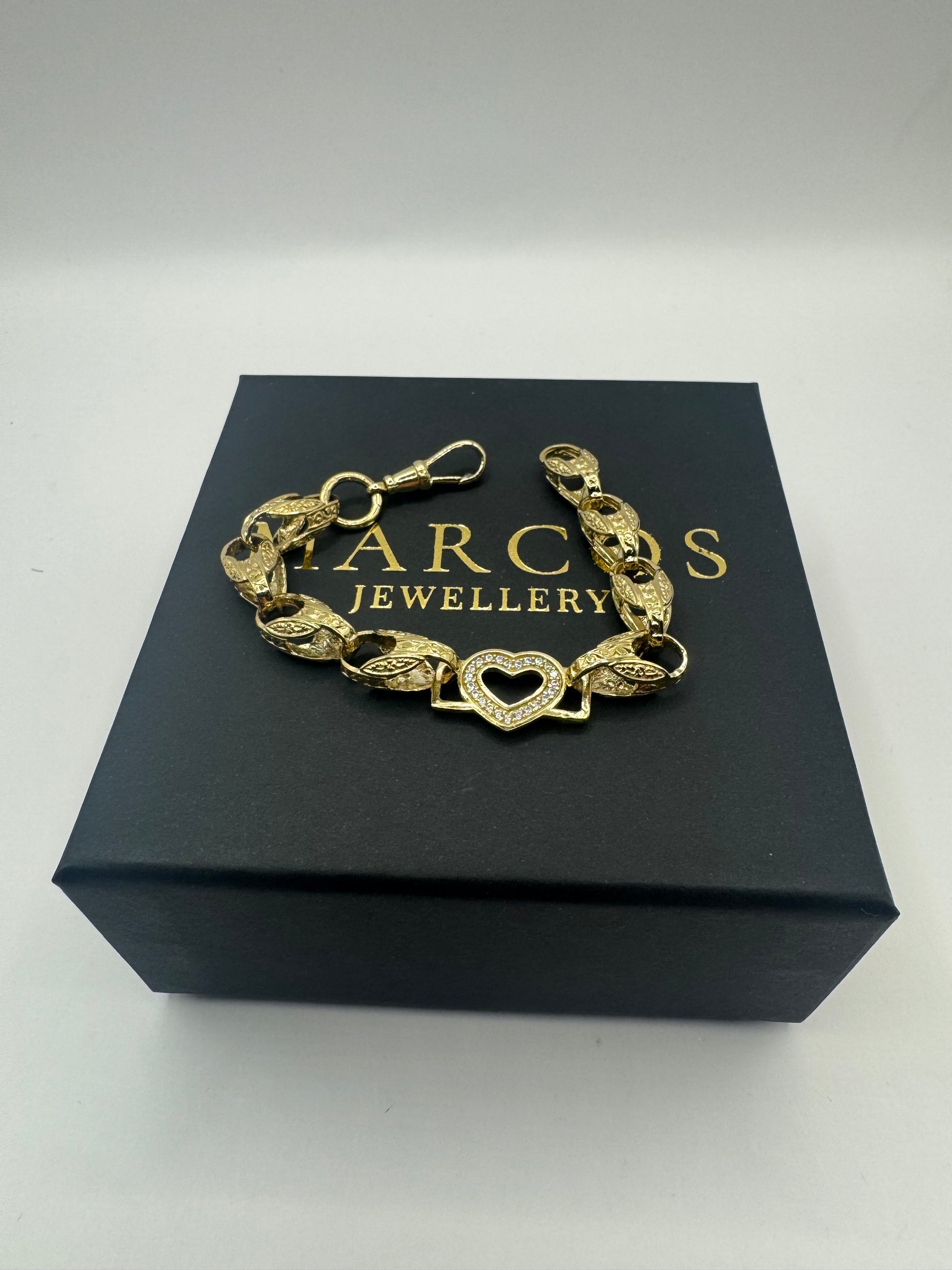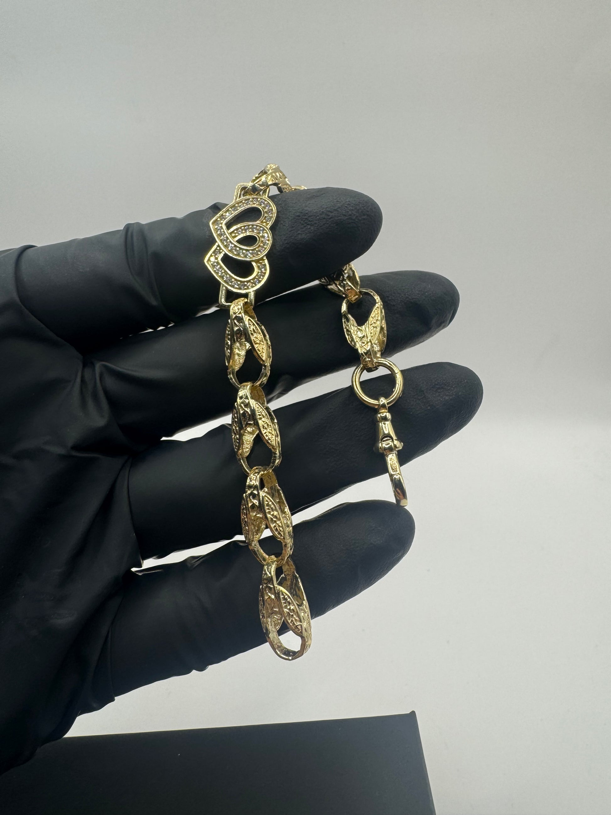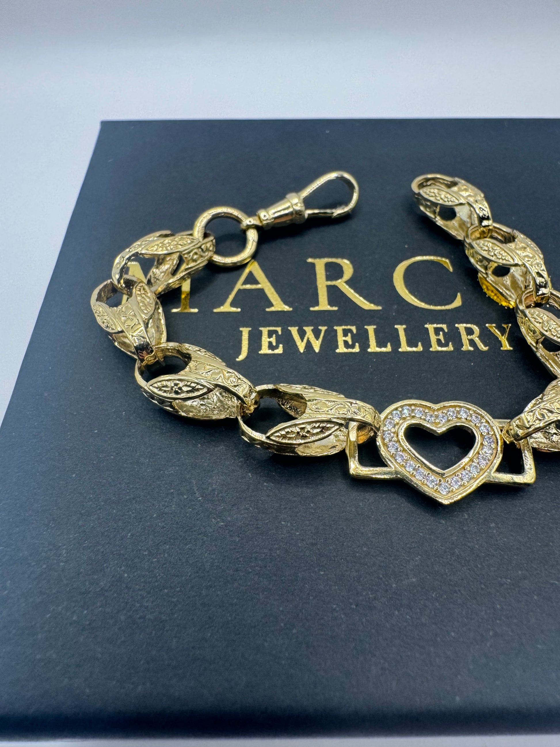 9ct Gold Tulip X Heart Bracelet CZ Stones 6.7" 8/12mm 14g