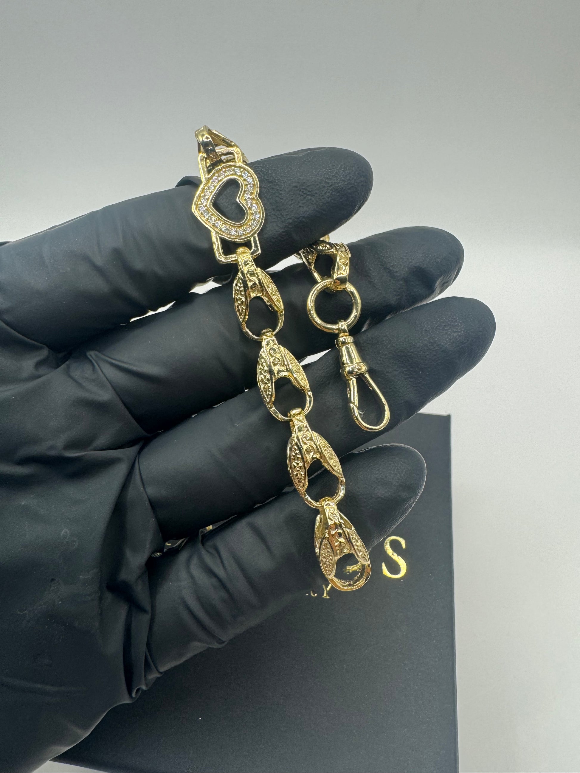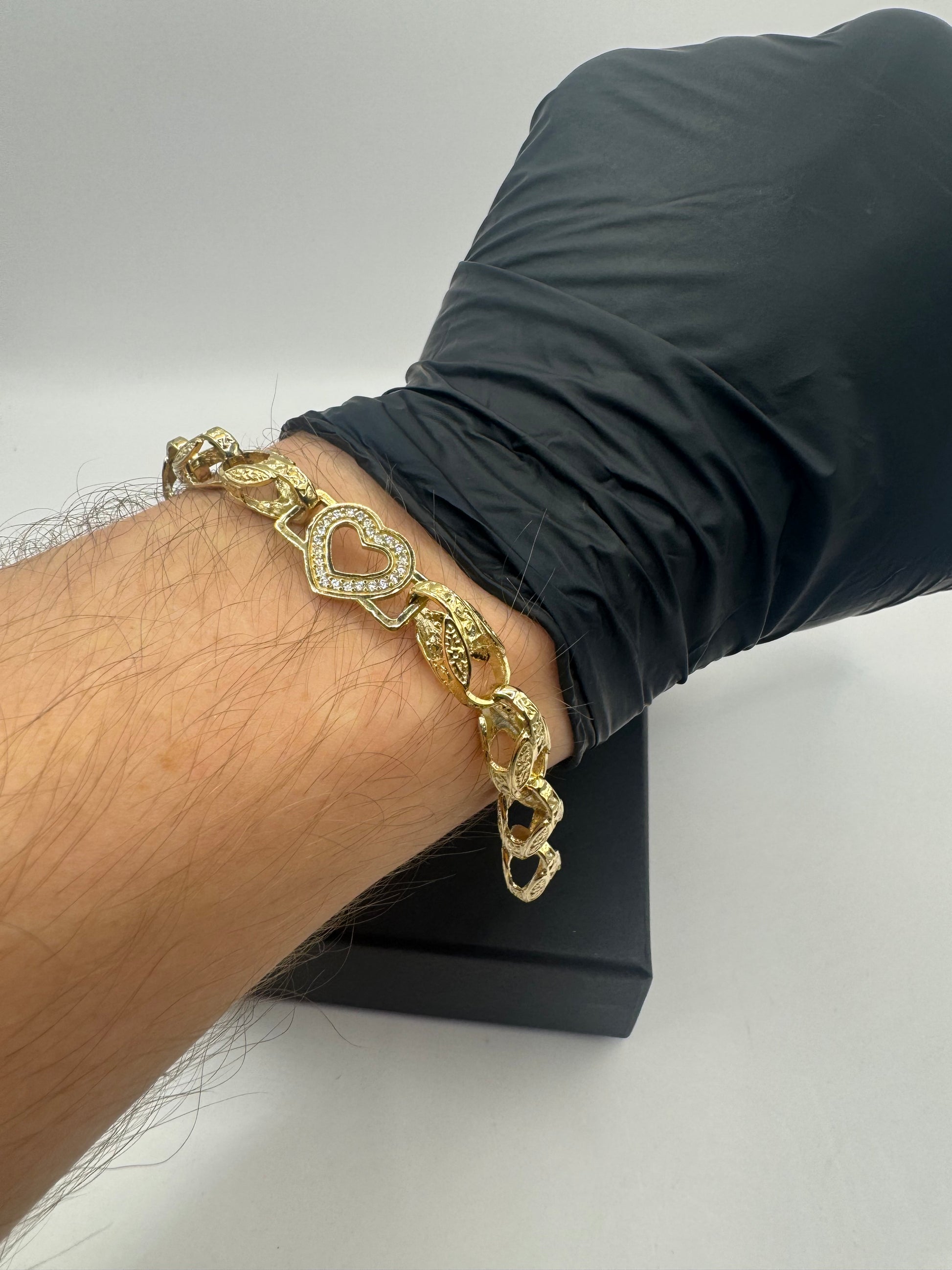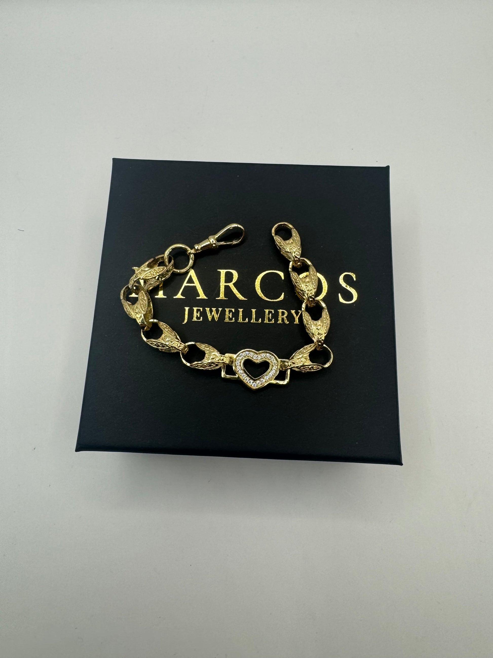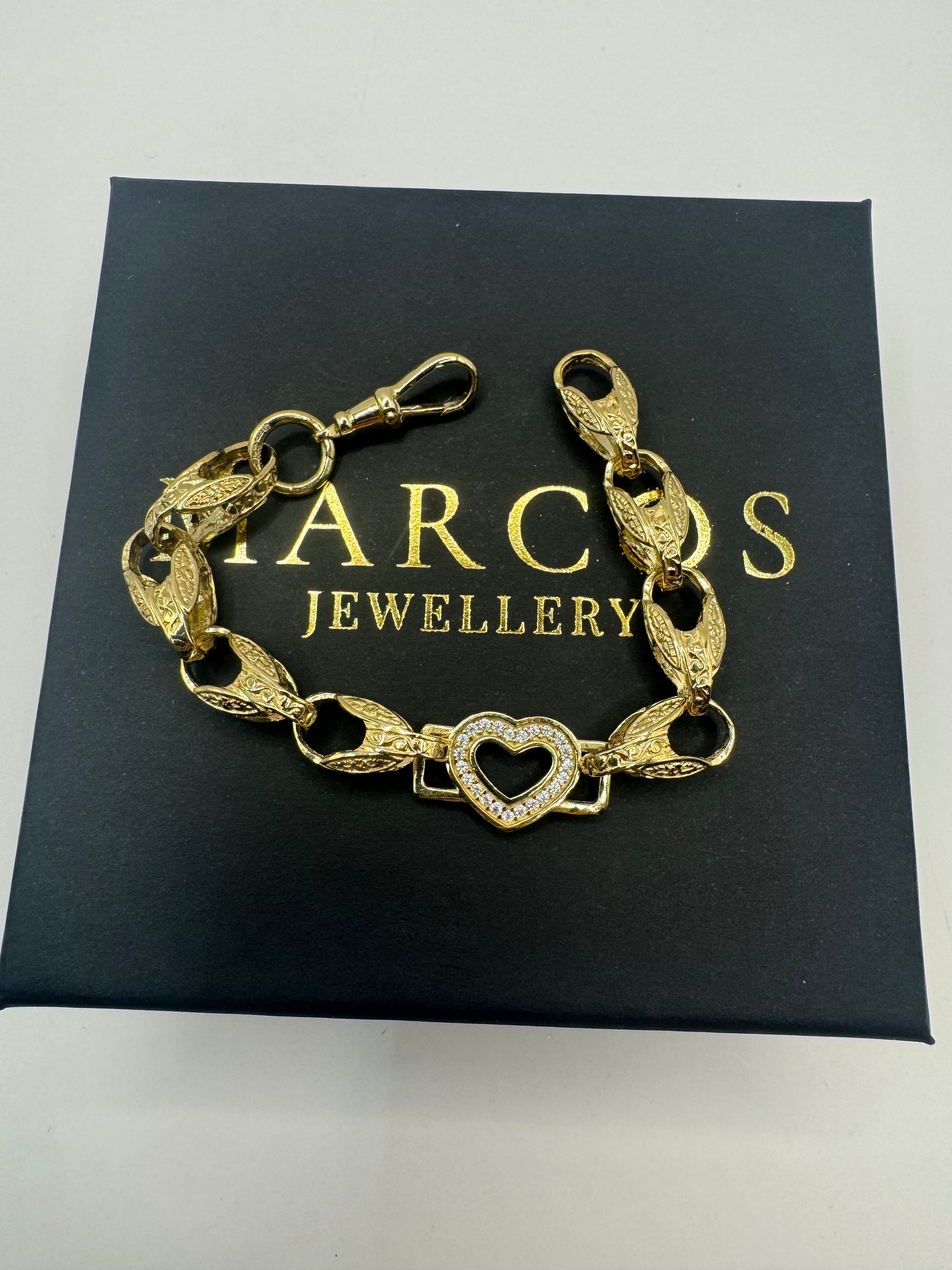 9ct Gold Tulip X Heart Bracelet CZ Stones 6.7" 8/12mm 14g